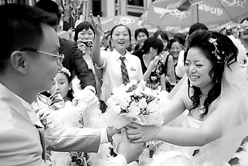 日前,一場(chǎng)別致的集體婚禮在百年老校光明中學(xué)舉行。4對(duì)新人大部分是學(xué)校的青年教師,放假的學(xué)生特意趕來為老師祝福。