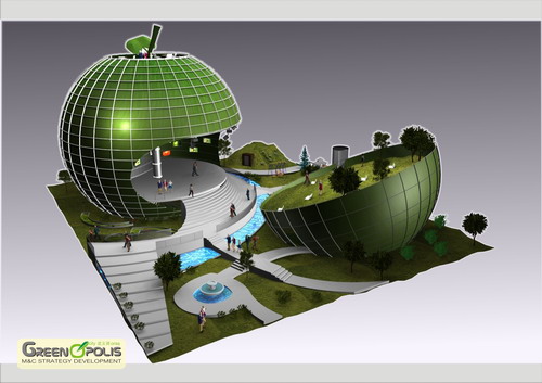 上海世博會(huì)羅馬尼亞館占地2000平方米,將以“綠色城市”為主題,展示城市中的歷史文化遺產(chǎn),展現(xiàn)羅馬尼亞人民致力于更美好生活的智慧。羅馬尼亞館的蘋果外形和標(biāo)志文字“GREENOPOLIS”體現(xiàn)了健康生活方式的重要性、對(duì)可持續(xù)發(fā)展理念的關(guān)注以及針對(duì)現(xiàn)代社會(huì)普遍存在問(wèn)題的以知識(shí)為本的解決方案。
