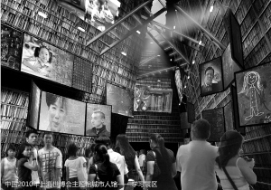 進(jìn)入家庭展區(qū)后,觀眾滿眼都將是這些家庭成員的影像,這些影像由投影機投射到許多鏡子上,再互相反射,呈現(xiàn)“無處不在”的感覺。在工作展區(qū),一個屏幕可以自動旋轉(zhuǎn),用來表現(xiàn)六個家庭的不同工作情況。在交往展區(qū),則把六個家庭的社會交往情況投射到天幕上。展區(qū)屋頂上垂下一條條桿子,觀眾觸摸一條桿子,相應(yīng)一條某處的桿子就會發(fā)亮,顯示人們之間交往的感覺。在學(xué)習(xí)展區(qū),將模擬一個很大的書柜,展區(qū)空間會變色,顯示從早到晚的變化。在健康展區(qū),屏幕上將表現(xiàn)各個家庭怎樣從事醫(yī)療、如何維護(hù)健康等。展覽結(jié)尾處是六個家庭在屏幕上和大家揮手說再見。