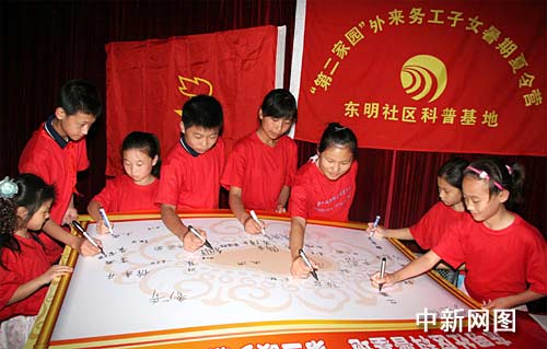 整個歡樂夏令營系列活動從7月9日至8月18日歷時一個多月。期間,主要有“看浦東、看世博”外出參觀、“動手動腦”小制作、健身智能比賽、“我們是新上海人”外來務工子女學說上海話,以及“東明社區(qū)我的家”等活動,可謂周周有活動,內容豐富,精彩有趣。
