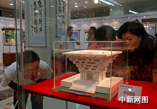 紙塑世博會(huì)中國館的作者名叫吉?jiǎng)倬,其手工作品展今天上午在首都圖書館開幕。他說:“國慶即將到來,我特意制作了這個(gè)世博會(huì)中國館紙模為建國六十周年獻(xiàn)禮!”