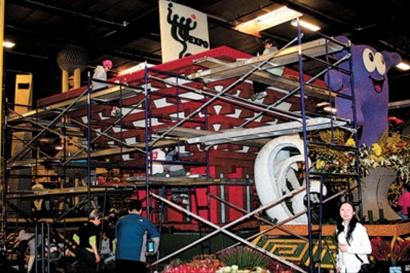巡游前夕,記者在帕薩迪那的花車制作工廠遇到了花車巡游現(xiàn)場總指揮鹿強。雖然對花車行進路線、表演時段早已了然于胸,但是他不放棄任何細化方案的機會。