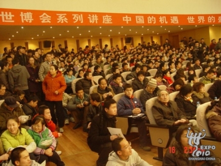 當(dāng)日下午1點(diǎn),距離講座開始還有一個多小時,陜西省圖書館報告廳門前已經(jīng)排滿聽眾。報告廳講臺以上海世博會中國館為背景,會場內(nèi)張貼著上海世博會海報,講座之前播放了上海世博會的專題宣傳片。報告廳有300多個座位,工作人員臨時加了板凳,還有相當(dāng)多的聽眾站在走道上。下午2點(diǎn)30分,吳建中在熱烈的掌聲中走上講臺,以精彩、生動的語言,豐富、翔實(shí)的多媒體資料,介紹了上海世博會的理念與形態(tài),還就世博會的歷史、功能、意義,以及中國2010年上海世博會的主要內(nèi)容一一作了介紹;為聽眾詮釋了世博會的主題及其文化和理念,展示了世博會的風(fēng)貌和魅力。演講進(jìn)入互動環(huán)節(jié),聽眾對如何參與上海世博會十分關(guān)心,吳建中耐心細(xì)致地與聽眾進(jìn)行了交流。
