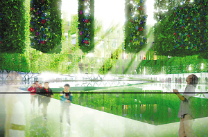 “建筑內(nèi)部的綠色立體園林,也使用了可降解、可循環(huán)的材料,以盡可能達到最大限度的環(huán)保。這些綠色的植物,除了可以讓人們親近自然,還能夠幫助調(diào)節(jié)室內(nèi)溫度,讓參觀者更加舒適。屋頂?shù)奶柲茈姵匕澹瑒t提供了清潔而免費的能源!狈娇烧f。