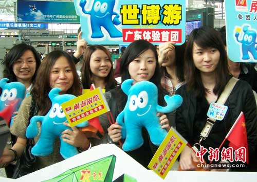 中新網(wǎng)廣州4月19日電 (記者 莫非 通訊員 林月明)4月19日中午,白云機(jī)場(chǎng)國(guó)內(nèi)出發(fā)廳人氣爆棚,數(shù)十名廣東游客首嘗世博游“頭啖湯”,成為廣東進(jìn)入世博會(huì)游覽的第一批游客。