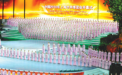 當(dāng)700位少女吟詠出天籟之音的一刻,8000多人的上海世博文化中心一片靜寂;當(dāng)漫天焰火釋放出億萬(wàn)人激情的時(shí)候,黃浦江兩岸又轉(zhuǎn)而熱血沸騰。一靜一動(dòng),室內(nèi)室外,陸地江面,天空大地,讓世博會(huì)開(kāi)幕式形成天地合一的整體。
