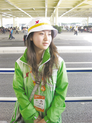 張筠老家在江西,是復旦大學視覺藝術學院的大一學生,標準的90后女孩。通過網(wǎng)上報名并獲得任用后,她成為了上海世博會首批志愿者,而如果再細分則可稱作“高峰期志愿者”!懊刻煸缟7點半不到就得到園區(qū),晚上下班時間不定,至少10點以后吧!睆報薷嬖V記者,她每天要做的,就是站在這處位于商業(yè)中心最繁華的街角,為任何有需要的游客提供力所能及的幫助。接受采訪時,女孩才正式上崗短短半日,“已經(jīng)為至少20個游客指路,或是回答他們的一些咨詢。”