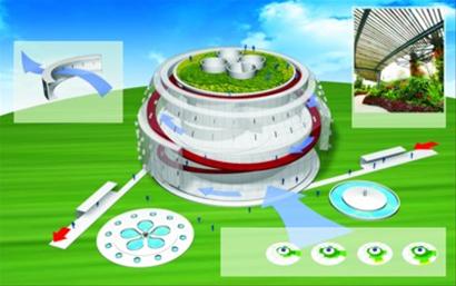 場(chǎng)館頂層建有“空中花園”,種植熱帶植物石斛蘭,既節(jié)能,又能降低展館室溫