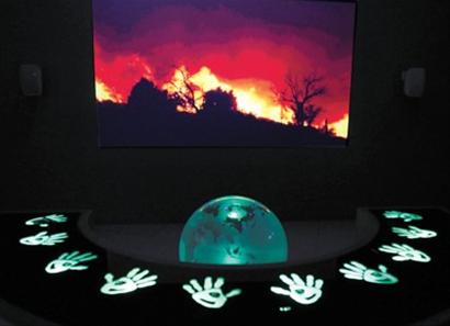 從“希臘的一天”中,游客看到了城市生活的繁忙與樂趣,也發(fā)現(xiàn)城市面臨的挑戰(zhàn)與難題。就像在“生態(tài)”那一章中:當(dāng)5位游客同時(shí)把雙手按在互動(dòng)桌上時(shí),屏幕上觸目驚心的環(huán)境污染立即消失,取而代之的是希臘為應(yīng)對挑戰(zhàn)而做的努力,如臨海而建的風(fēng)能發(fā)電場、居民住宅上的太陽能屋頂?shù)。小小的“互?dòng)”告訴我們:生態(tài)城市僅僅依靠一個(gè)人的努力是不夠的,同心協(xié)力,才會(huì)有“更好的生活”。(劉穎)