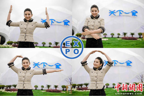 中新網(wǎng)5月11日電 作為“世博手勢形象大使”,同時(shí)也是上海女孩,黃奕日前來到世博館“天下一家”未來館門口,拍攝一組手勢大片,身體力行教大家如何演繹EXPO的含義。