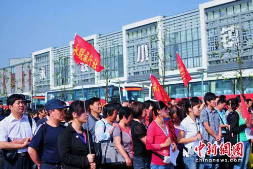 中新網(wǎng)張家港5月25日電(李克祥)“放眼看世界,享受新生活。”今天清晨,以此為主題的“萬人游世博”在張家港永聯(lián)村正式啟動,由350名村民職工代表組成的首發(fā)團,登上開往上海世博園區(qū)的“幸福”大巴,實現(xiàn)不出國門的“出國”開眼界之旅。