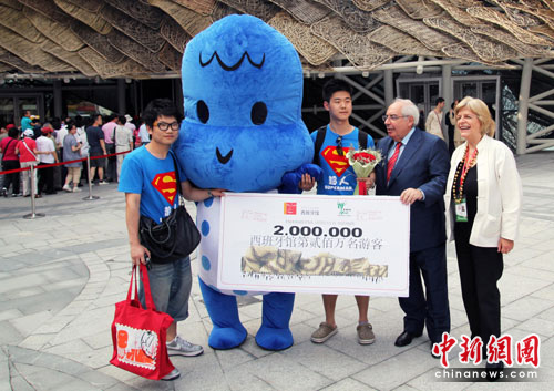 中新網(wǎng)上海6月22日電(記者 殷春永)上海世博會(huì)西班牙館21日迎來第200萬名游客,除外觀酷似“大籃子”的造型給人們難忘的印象外,該館的接待人員能說西班牙語、中文和英語,亦頗受游客贊賞。