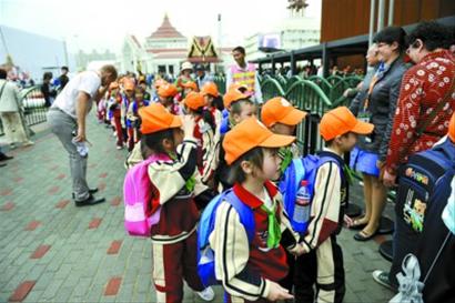 這兩天,世博園里出現(xiàn)了很多身著校服,組隊游覽的中小學生。原來,他們都是參加“考后世博游”的孩子。期末考試結(jié)束后,本市和外省市的不少中小學立即組織學生前往世博園,把這里當作了新的課堂。對此,華師大副校長任友群教授表示,中小學應(yīng)充分利用世博會資源,在即將到來的暑假和新學期中,由老師帶領(lǐng)學生進園區(qū),開展“世博教學”。