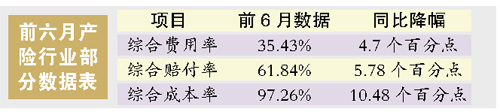 保監(jiān)會(huì)指出,國(guó)內(nèi)產(chǎn)險(xiǎn)業(yè)今年上半年實(shí)現(xiàn)了行業(yè)經(jīng)營(yíng)上的“兩降兩升”,即:費(fèi)用率、賠付率下降,經(jīng)營(yíng)效益、保費(fèi)充足率上升。