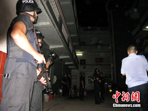 凌晨1時許,南寧市公安局局長廖洪濤與副局長吳宏飛率領數(shù)十輛滿載警察的車輛,飛速駛往橫縣。中新網(wǎng)記者跟隨這些全副武裝的特警和巡警等警種一同前往。