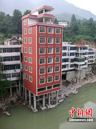 中新網(wǎng)恩施7月17日電(詹宏升 陳地長)湖北恩施州鶴峰縣一村民在河道里建起7層高樓房,嚴(yán)重威脅行洪泄洪的安全,被網(wǎng)友稱為“湖北最牛違章建筑”。記者了解到,當(dāng)?shù)卣严蚍恐鲝埬诚掳l(fā)了自行拆遷通知書,如果到本月25日,張某還沒有自行拆除,政府將強制拆除。