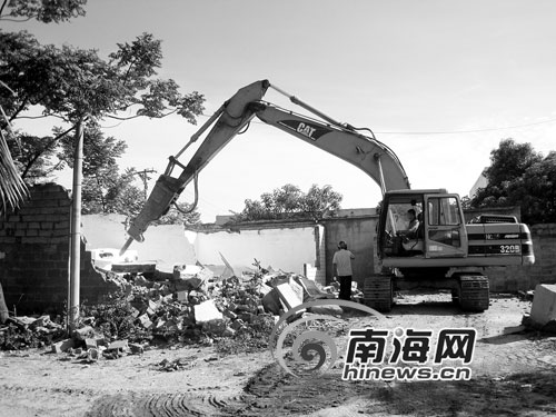 至今日止,鎮(zhèn)海村11宗違法建筑中,已有6戶自行拆除。根據(jù)?谑械慕y(tǒng)一拆違工作部署,秀英區(qū)今日對鎮(zhèn)海村的5宗違法建筑采取了強(qiáng)制拆除行動。