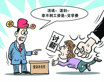 27日,因東莞市東城區(qū)“藏寶國際大酒店”拖欠裝修工人工資,工人拉橫幅上街討薪,兩工人被不明身份的黑衣人毆打。28日,東城區(qū)政府信訪辦就此舉行協(xié)調(diào)會(huì),會(huì)上工人提及被打一事,主持會(huì)議的信訪辦主任葉柱權(quán)說是“活該”,他情緒激動(dòng),拍桌子罵女工人為“潑婦”,稱工人拿不到工資是“交學(xué)費(fèi)”。(相關(guān)報(bào)道見今日A14版)