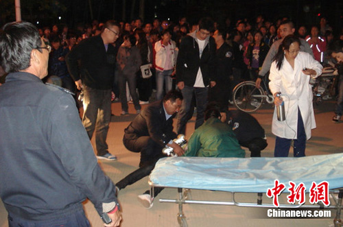 事發(fā)現(xiàn)場,肇事車輛前擋風(fēng)玻璃當(dāng)場撞碎,兩被撞女生一人昏迷,一人倒地不能動,昏迷女孩頭部有血跡。事發(fā)后,有學(xué)生去通知校警衛(wèi)室,有學(xué)生去通知校醫(yī),有學(xué)生撥打了110、120,也有學(xué)生記下肇事車輛車牌號。