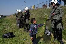 希臘防爆警察阻止難民入境 卻意外收到鮮花