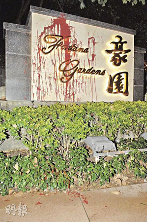 中新網(wǎng)7月6日電 據(jù)香港明報(bào)報(bào)道,住有多名名人的香港老牌豪宅“豪園”,門外兩個大門牌5日凌晨遭人淋潑紅油,更被貼上多張寫有同一人名的追債紙張。屋苑保安其后巡經(jīng)發(fā)現(xiàn)報(bào)警,警方正調(diào)查案件是否與工程公司或住客等有關(guān)。