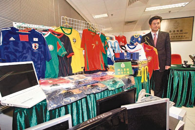 中新網(wǎng)7月9日電 據(jù)香港文匯報(bào)報(bào)道,南非世界杯掀起足球熱潮,售價(jià)僅及正版球衣1/3價(jià)錢的冒牌球衣也于各大甩賣網(wǎng)站熱賣。香港海關(guān)近日成功破獲18宗網(wǎng)上售賣侵權(quán)物品案,搜獲逾3000件冒牌貨及17臺計(jì)算機(jī),包括800件質(zhì)量差劣的冒牌球衣,總值逾39萬元。被捕的22名男女中,包括3名大專學(xué)生、補(bǔ)習(xí)老師,甚至?xí)?jì)師等專業(yè)人士,涉及經(jīng)營該等不法副業(yè),各人暫準(zhǔn)保釋候查。