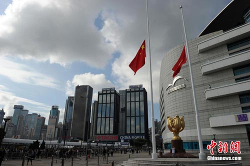根據(jù)國務(wù)院通知,當(dāng)日所有特區(qū)政府及中央駐港機(jī)構(gòu)的國旗下半旗致哀。而港府也發(fā)布,默哀期間,除緊急及出入境服務(wù)外,其它政府服務(wù)暫停;當(dāng)值的政府人員在辦公地點參與默哀。