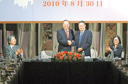 臺(tái)港兩會(huì)第一次聯(lián)席會(huì)議昨日上午在晶華酒店舉行,包括“陸委會(huì)正副主委”賴(lài)幸媛、高長(zhǎng)、趙建民、策進(jìn)會(huì)董事長(zhǎng)林振國(guó)、香港財(cái)政司司長(zhǎng)曾俊華、協(xié)進(jìn)會(huì)主席李業(yè)廣、香港政制及內(nèi)地事務(wù)局局長(zhǎng)林瑞麟等逾四十位兩會(huì)成員參加,達(dá)成七項(xiàng)合作共識(shí)。