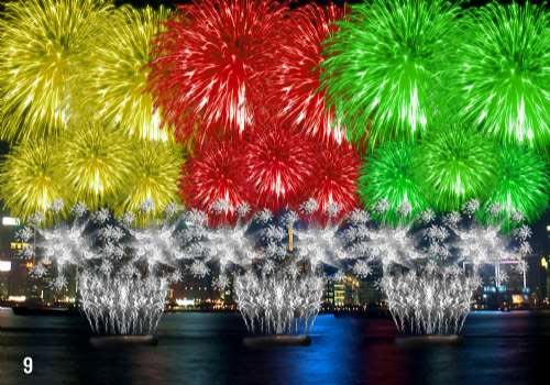 國慶煙花匯演共有九幕。第一幕“萬眾同心”,天空中將綻放出大“紅太陽”、“紅色五角星”和“紫荊花”形圖案,慶祝國慶。在第五幕,銀閃、綠閃、紅閃、金閃、橙閃等顏色的煙花,和諧悅目,展示該幕主題“大同世界”;最后一幕“國運(yùn)昌隆”,絢爛而熱鬧,加上長達(dá)六十秒密集發(fā)放繽紛色彩的煙花,把整個煙花匯演推向高潮。