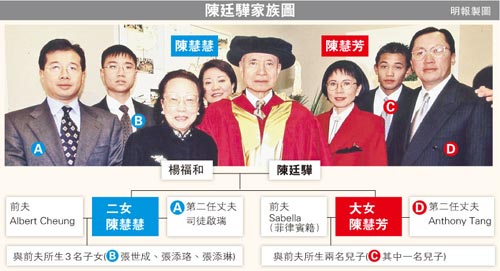 不過,據(jù)消息人士透露,與訟雙方在楊福和正式入稟前,曾多次談判尋求和解方案,但一直未能成功,相信今次爭拗難以透過和平方式解決,很大可能要對簿公堂。有認(rèn)識陳家的人透露,楊福和已年過80,一向十分低調(diào),但家人之間很少提及她,相信陳氏夫婦二人關(guān)系并不密切,而平常陪伴陳廷驊出入的,也多數(shù)是陳慧芳,陳慧慧雖較少陪伴在側(cè),但對父親的病情其實也看得很緊。消息人士稱,兩姐妹都屬于個性強、愛主導(dǎo)、愛話事的人,兩人因為家產(chǎn)管理問題其實早已有摩擦。
