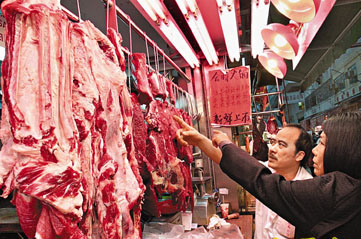 圖:香港今天沒有鮮牛肉應(yīng)市,肉檔只好賣存貨。(圖片來源:文匯報)