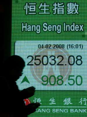 中新網(wǎng)2月5日電 據(jù)香港大公報(bào)報(bào)道,內(nèi)地雪災(zāi)稍為舒緩,市場(chǎng)預(yù)期中央政府將會(huì)投入大量資源進(jìn)行重建工作,而宏調(diào)措施也可能暫時(shí)“松綁”,加上環(huán)球大型并購(gòu)活動(dòng)的憧憬,帶動(dòng)港股承接上周五升勢(shì)再下一城,4日勁升重返25000點(diǎn)關(guān)口。分析員建議投資者現(xiàn)階段宜增持現(xiàn)金比重。