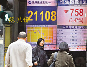 中新網(wǎng)3月21日電 據(jù)香港大公報(bào)報(bào)道,環(huán)球商品價(jià)格急跌,引發(fā)亞太區(qū)股市顯著回落,其間港股在金價(jià)油價(jià)商品股拖累下,收市時(shí)跌758點(diǎn),是亞太區(qū)內(nèi)表現(xiàn)最差的市場(chǎng)。分析員指出,恒指50天線在周三已跌穿250天線,不少投資者會(huì)視之為“熊市”的確認(rèn)。