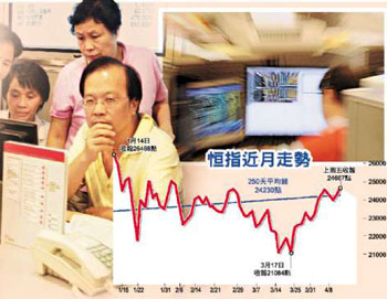 恒指上周累升403點,收報24667點,是3月底以來,連續(xù)三個星期錄得升市,升幅達到3558點,但近期上升動力有緩和跡象。例如當大市低位時,獨領群雄的匯控,近日升勢不繼。反而,內(nèi)地銀行股卻接力向上。