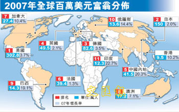 不過(guò),受累于美國(guó)次按問(wèn)題,近半年金融業(yè)界的資產(chǎn)撥備再創(chuàng)新高,令環(huán)球股市去年10月來(lái)持續(xù)下挫,不少地區(qū)的股市跌幅近半,因此,金融資產(chǎn)達(dá)百萬(wàn)美元的富翁,今時(shí)今日或者已沒(méi)有美林所指的那么多。