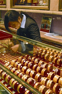 內(nèi)地收緊自由行,珠寶首飾貴價品銷情同受影響,連鎖金飾店負(fù)責(zé)人指出,自由行收緊后,6月起生意額即見下跌,起碼跌二至三成。一般而言,內(nèi)地客購買珠寶首飾,廣東客消費(fèi)力稍遜北方客,前者人均消費(fèi)額有三四千元,后者則達(dá)五六千元,主要看購買的貨品類別而定。