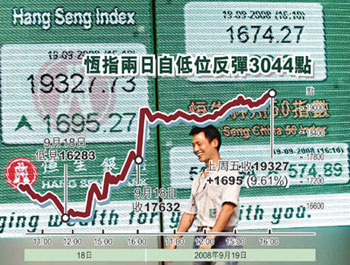 中新網(wǎng)9月22日電 據(jù)香港《文匯報(bào)》報(bào)道,美國政府的一連串救市措施,刺激道指上周五大漲368點(diǎn),收于11388點(diǎn)。21日晚上,國家證監(jiān)會(huì)又公布放松上市公司股票回購的管制,無疑為A股再注強(qiáng)心針。