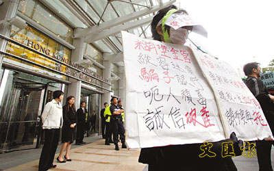 圖為雷曼苦主在香港金管局前示威。圖片來(lái)源:文匯報(bào)