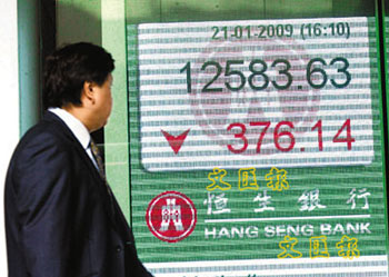 中新網(wǎng)1月22日電 據(jù)香港《文匯報(bào)》報(bào)道,21日港股承接美股大跌332.13點(diǎn)的勢(shì)頭,在匯控被力沽及國壽受盈警拖累股價(jià)下挫7.5%的情況下,恒生指數(shù)收市下跌376.14點(diǎn)至12,583.63點(diǎn),其跌幅為2.9%,不算太大。