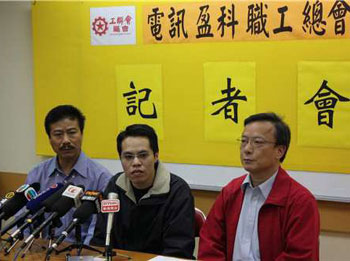 香港工聯(lián)會權(quán)益委員會及電盈工會19日召開緊急記者會,工聯(lián)會權(quán)益委員會副主任崔世昌表示,19日收到35個電盈員工投訴,稱被公司解雇,其中包括16名長工和19名合約工,主要來自產(chǎn)品市場及推廣部及寬帶網(wǎng)絡(luò)設(shè)計部,年資最長30年。