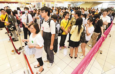 招聘會“?汀碧烊蛔o理用品中心今年內(nèi)會擴張20間分店,因此這次招聘會希望能夠招聘50位售貨員。該公司營運總監(jiān)紀(jì)雅麗指出,受金融海嘯影響,售貨員底薪連勤工獎由去年的6800元下跌至今年的5800元,但若雇員通過3個月試用期,公司會將底薪連勤工獎?wù){(diào)升至6800元。