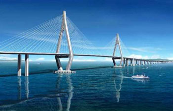 據(jù)方案估算,大橋用鋼量達(dá)123.35萬(wàn)噸,較杭州灣跨海大橋多一半,相當(dāng)于建造11個(gè)“鳥巢”國(guó)家體育場(chǎng)。
