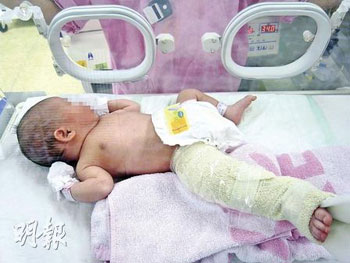 中新網(wǎng)9月23日電 據(jù)香港《明報(bào)》報(bào)道,一名來(lái)自佛山的婦人日前到香港浸會(huì)醫(yī)院剖腹生下女?huà)耄改阜Q(chēng)女?huà)氤錾鷷r(shí)正常且“撐手撐腳”,但3小時(shí)后醫(yī)生才告知女?huà)胗彝裙钦,父母懷疑是醫(yī)護(hù)人員疏忽照顧所致,已報(bào)警求助。