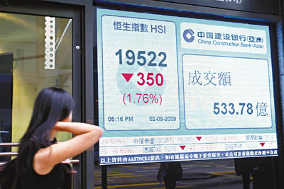 中新網(wǎng)9月3日電 據(jù)香港《文匯報(bào)》報(bào)道,A股剛見回穩(wěn),美股又展開新一輪跌勢(shì),道指周二晚跌185點(diǎn),縱使A股回升1.1%,但仍無阻港股再挫。恒指2日低開312點(diǎn)后,最多跌446點(diǎn),全日收?qǐng)?bào)19522點(diǎn),跌350點(diǎn),跌幅1.8%。