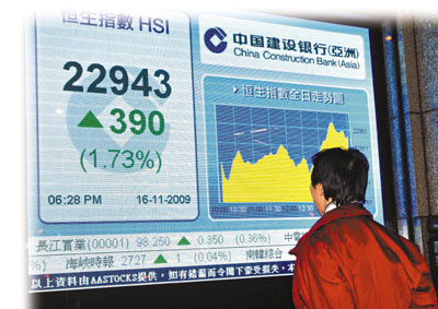 中新網(wǎng)11月17日電 據(jù)香港《文匯報(bào)》報(bào)道,美國(guó)總統(tǒng)奧巴馬訪華,市場(chǎng)氣氛暢旺,尤其是傳出人行報(bào)告對(duì)人民幣匯率的調(diào)子有變動(dòng),引發(fā)澎湃的國(guó)際熱錢(qián)涌入港元炒作人民幣升值,恒指16日升至近15個(gè)半月新高,報(bào)22943.9點(diǎn),升390點(diǎn)。