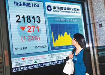 中新網(wǎng)12月16日電 據(jù)香港《文匯報(bào)》報(bào)道,港股經(jīng)周一反彈后15日再回吐,迪拜世界獲救,對(duì)港股的刺激只有一天,恒指15日又遇上大量沽盤,最多跌310點(diǎn),全日收?qǐng)?bào)21813點(diǎn),跌271點(diǎn),成交額687.6億元。恒指再次失守50天線,期指也低水60點(diǎn),技術(shù)走勢進(jìn)一步轉(zhuǎn)差。