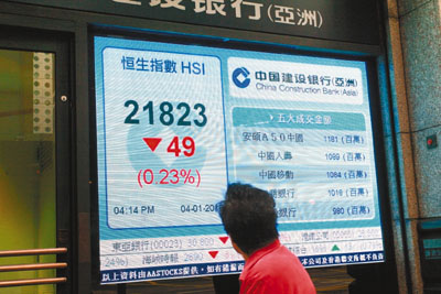 港股4日低開12點后,早段一度升逾200點,重越22000點關口,但午后A股掉頭下跌,加上港匯轉弱,市場憂慮資金流走,港股走勢反復向下,午后跌幅擴大低見21689.2點,收市報21823.28點,跌49.22點,失守50天線。國企指數(shù)跌43.58點至12750.55點。紅籌指數(shù)也跌41.2點至3711.06點。大市總成交較上交易日略增,至485.09億元。
