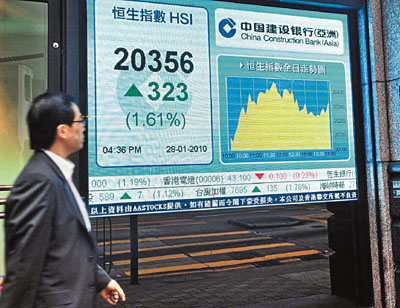 中新網(wǎng)1月29日電 據(jù)香港《文匯報(bào)》報(bào)道,聯(lián)儲(chǔ)局議息結(jié)果顯示前景樂(lè)觀,外圍股市回穩(wěn),連跌6天的港股在期指結(jié)算日也借機(jī)反彈,恒指最多彈逾400點(diǎn),全日收?qǐng)?bào)20356點(diǎn),升323點(diǎn),升幅1.6%,扭轉(zhuǎn)6天的跌勢(shì),但成交額卻減至664.7億元,反映買(mǎi)盤(pán)不活躍。