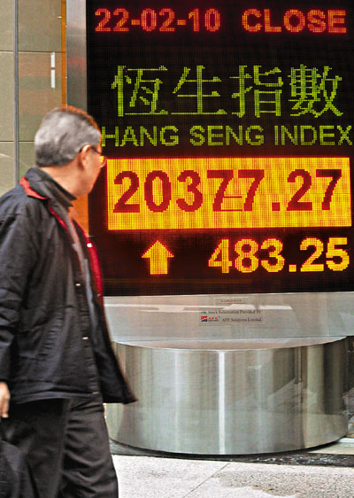 中新網(wǎng)2月23日電 據(jù)香港《文匯報(bào)》報(bào)道,內(nèi)地股市長(zhǎng)假期后重開(kāi),A股走勢(shì)偏軟,滬深兩市均未能收紅盤(pán)。由于香港上周五已經(jīng)大跌,加上下午賣地成績(jī)理想,令恒指22日擺脫A股的羈絆,大市在匯控、中移動(dòng)及一眾地產(chǎn)股上升帶動(dòng)下,重上20000點(diǎn)水平。