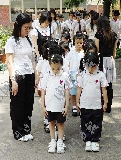 12日下午2時(shí)28分,圣心女子中學(xué)校長蘇映璇引領(lǐng)全體師生默哀一分鐘,悼念去年汶川大地震死去的同胞,該校各級(jí)學(xué)生代表也在操場進(jìn)行獻(xiàn)花儀式。